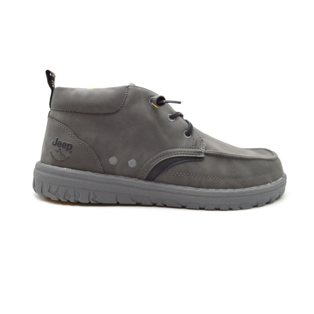 Ανδρικά μποτάκια, σε γκρί χρώμα, της επώνυμης εταιρείας JEEP.Είναι από τα πιο ελαφριά παπούτσια που θα έχετε βάλει,καθώς διαθέτουν ανατομικό πάτο και ελαστικά κορδόνια για ευκολότερη εφαρμογή Υλικό: Ύφασμα / Suede Φόδρα: Ύφασμα Ύψος τακουνιού: 2 cm Διαθέτει αντιολισθητική σόλα