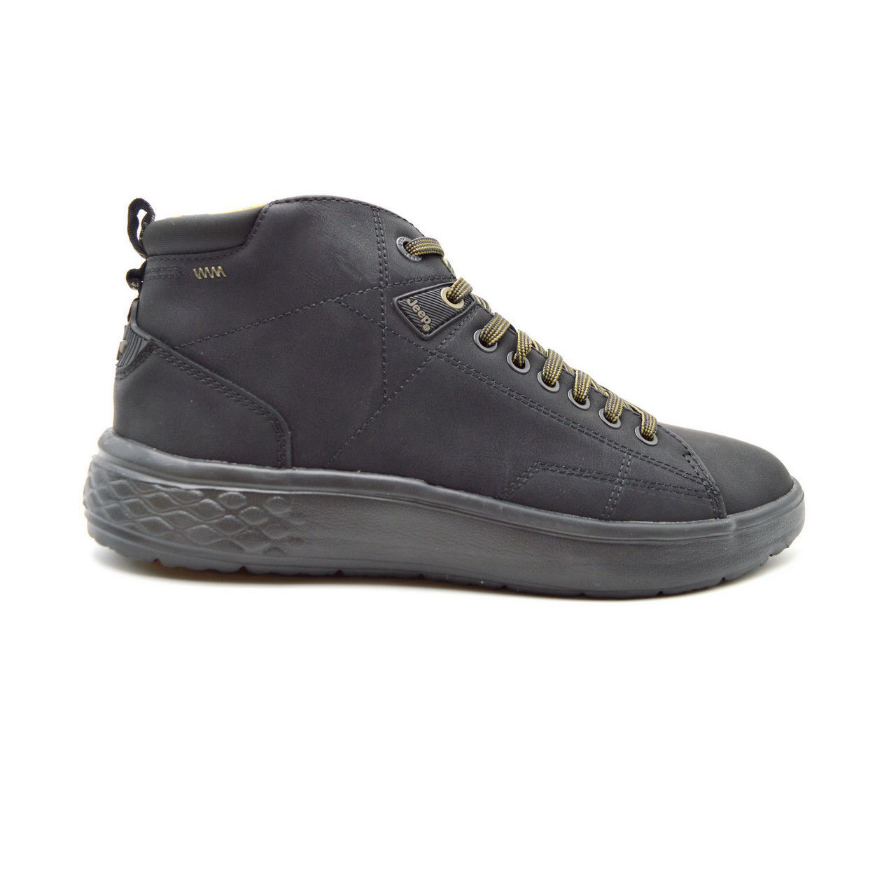 Ανδρικά μποτάκια, σε μαύρο χρώμα, της επώνυμης εταιρείας JEEP.Είναι από τα πιο ελαφριά παπούτσια που θα έχετε βάλει,καθώς διαθέτουν ανατομικό πάτο Υλικό: Ύφασμα / Suede Φόδρα: Ύφασμα Ύψος τακουνιού: 2 cm Διαθέτει αντιολισθητική σόλα