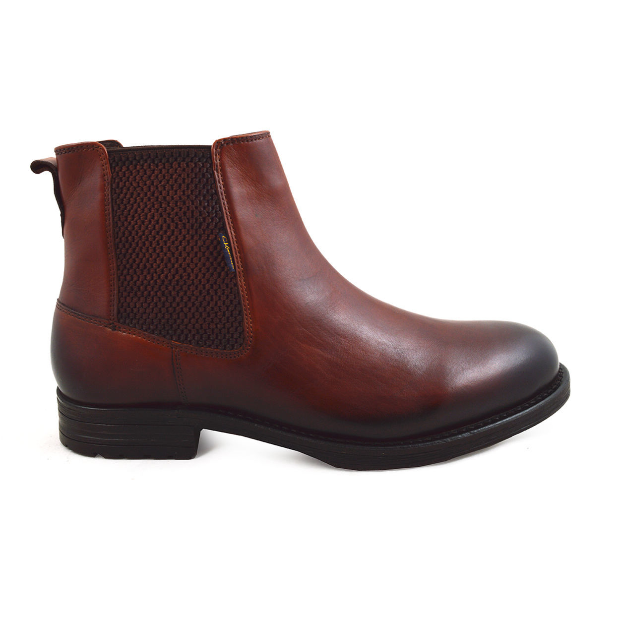 Ανδρικά μποτάκια GK Uomo από δέρμα με υφασμάτινη φόδρα και συνθετική σόλα. Διατίθεται σε χρώμα Κονιάκ.