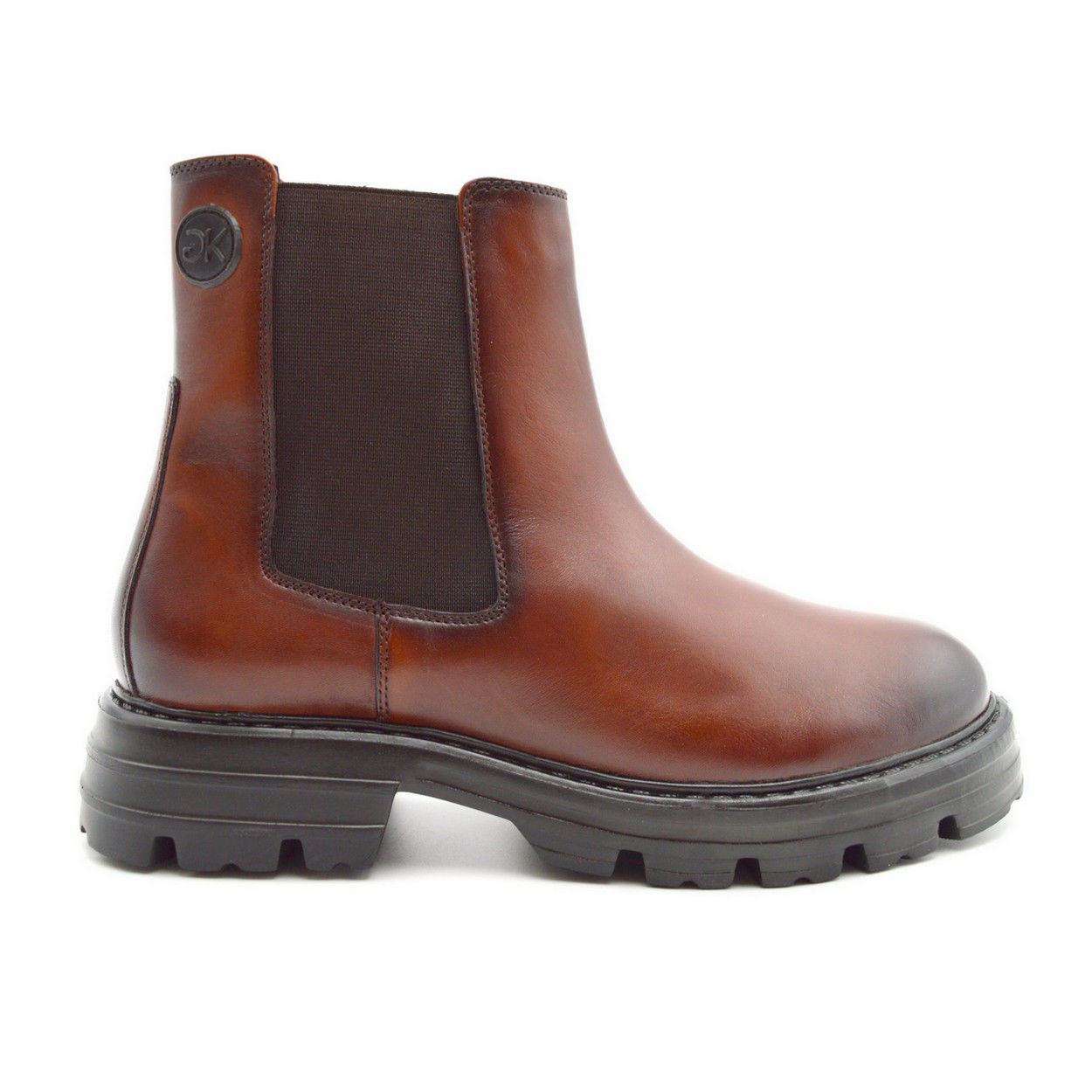 Ανδρικά μποτάκια GK Uomo από εξαιρετικής ποιότητας δέρμα με υφασμάτινη φόδρα και συνθετική σόλα. Διαθέτει λάστιχα στα πλαινά για πιο εύκολη εφαρμογή, καθώς και τρακτερωτή σόλα ,για να μην γλιστράει. Διατίθεται σε χρώμα κονιάκ