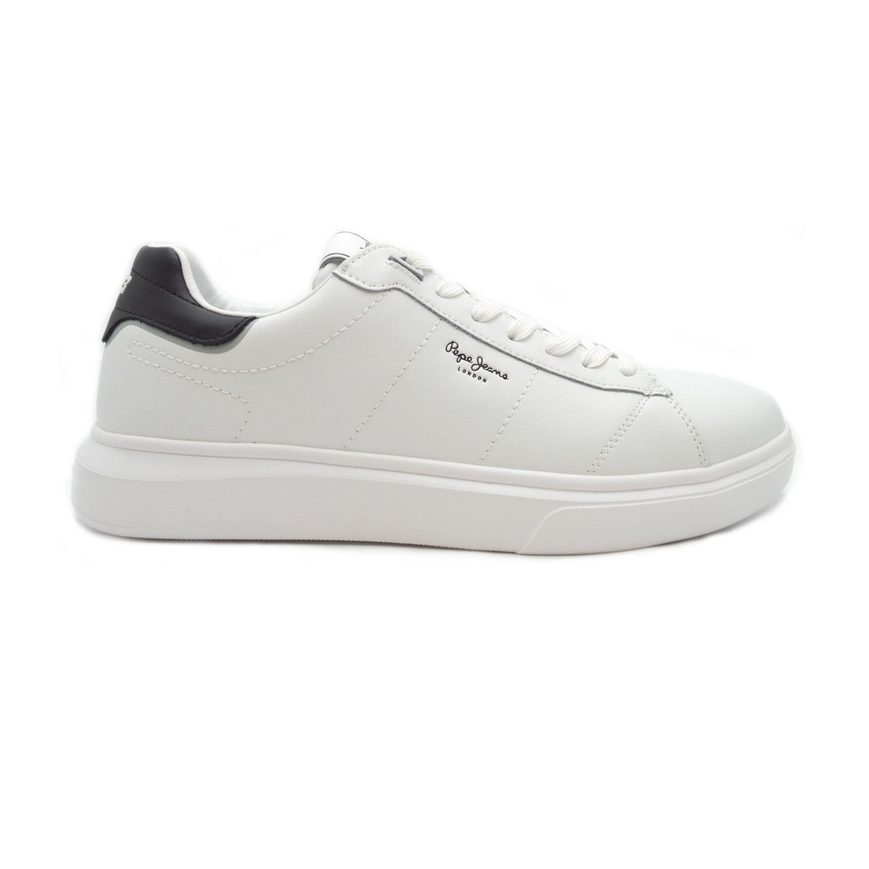 Ανδρικά Δερμάτινα Sneakers Eaton Basic με κωδικό PMS30981 800 σε λευκό χρώμα ,της Pepe Jeans Εξωτερικά είναι κατασκευασμένα από eco leather & εσωτερικά από eco leather και ύφασμα. Κανονική φόρμα. Δένουν με κορδόνια Αντιολισθητική σόλα. Διαθέτει λογότυπο PEPE JEANS στο πλάι και ετικέτα με το λογότυπο στη γλώσσα Συνδυάζονται με αθλητικά & casual ντυσίματα και είναι ιδανικά για κάθε μέρα.