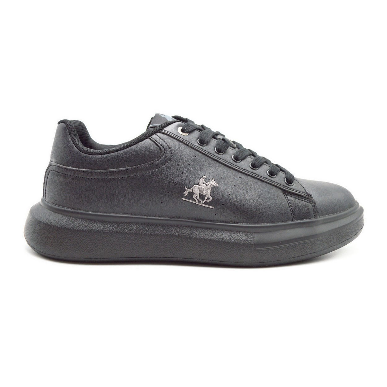 Ανδρικά sneakers της εταιρείας U.S. Grand Polo από οικολογικό δέρμα σε μαύρο χρώμα. Διαθέτουν υφασμάτινη επένδυση, μαλακό ανατομικό πάτο και ελαφριά αντιολισθητική σόλα για άνετα και σταθερά βήματα.