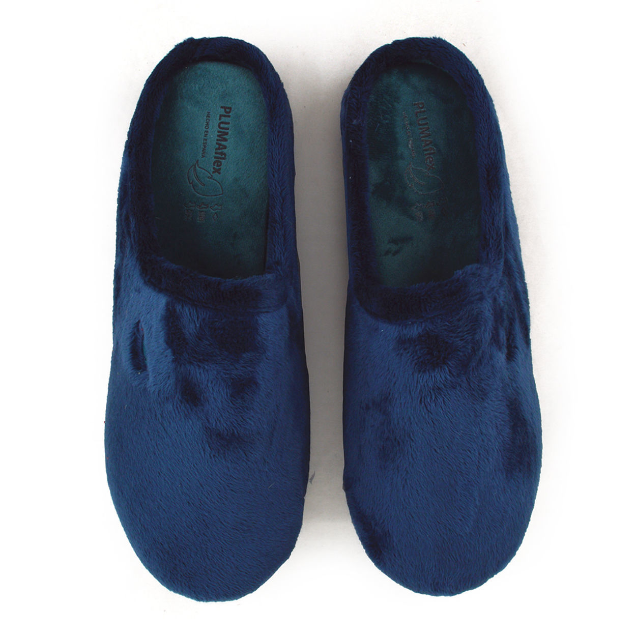 Ανδρικές Παντόφλες PlumaFlex από απαλό μπλε ύφασμα με την αφαιρούμενη, υψηλής ανάκτησης, αναπνεύσιμη σόλα από αφρό PU που προσαρμόζεται πλήρως στην ανατομία του ποδιού.