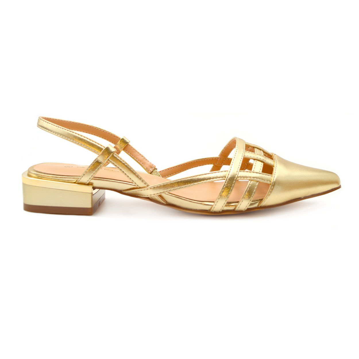 Γυναικείες μπαλαρίνες της εταιρείας Gianna Kazakou από δέρμα συνθετικό με συνθετική φόδρα και συνθετική σόλα. Διατίθεται σε χρώμα χρυσό. Γίνε και εσύ κομψή ακόμα και με ένα φλάτ ,κομψό παπούτσι.