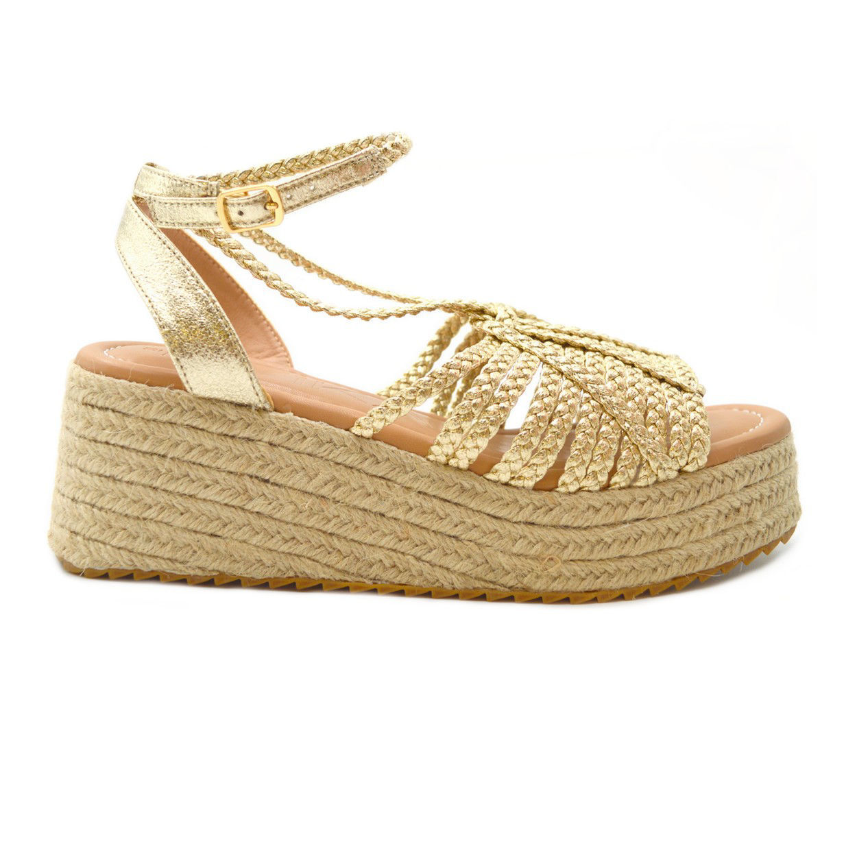 Εσπαντρίγιες platforms από εξαιρετικής ποιότητας υλικά . Δένουν με μπαρέτα στο ύψος του αστραγάλου. Σόλα ντυμένη με σχοινί. Διαθέτει ανατομικό (comfort) πάτημα , απόλυτη άνεση, διαπνοή, απορρόφηση κραδασμών . Είναι η ιδανική επιλογή για ατελείωτες ώρες βαδίσματος και άνεσης. •Φόρμα: Κανονική •Ύψος τακουνιού (cm):7.5