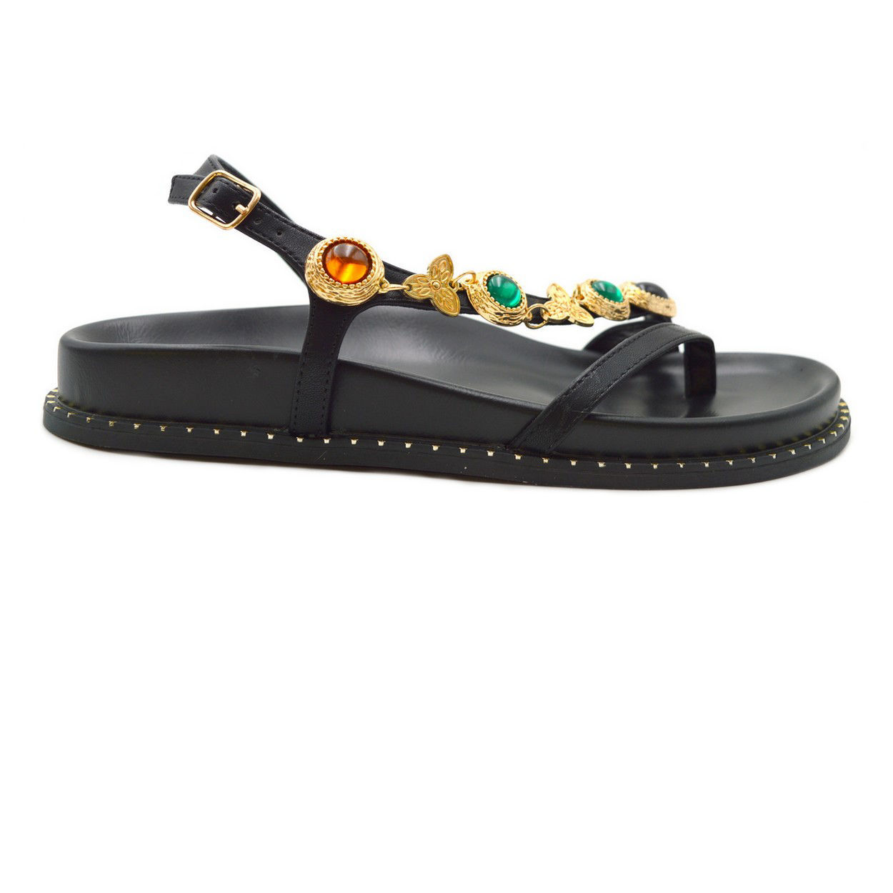 Το απόλυτο πέδιλο της σεζόν που μόλις θα το βάλετε θα κλέψετε τις εντυπώσεις .Μπορείτε να το φοράτε αφού έχει αερόσολο πάτημα και να μην κουράζεστε. Επίσης διαθέτει εκθαμβωτικά μεταλλικά στοιχεία με πέτρες που το κάνει άκρως εντυπωσιακό. Ένα πέδιλο που δεν πρέπει να χάσετε.