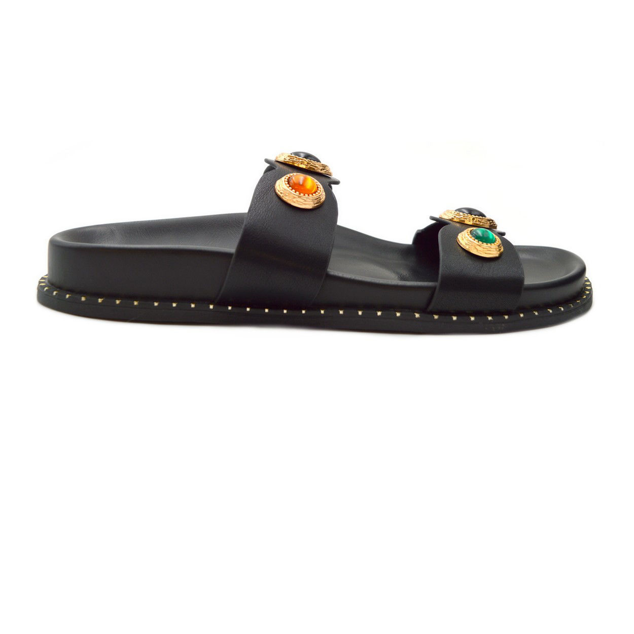 Η απόλυτες σαγιονάρες της σεζόν που μόλις θα το βάλετε θα κλέψετε τις εντυπώσεις .Μπορείτε να το φοράτε αφού έχει αερόσολο πάτημα και να μην κουράζεστε. Επίσης διαθέτει εκθαμβωτικά μεταλλικά στοιχεία με πέτρες που το κάνει άκρως εντυπωσιακό. Ένα πέδιλο που δεν πρέπει να χάσετε.