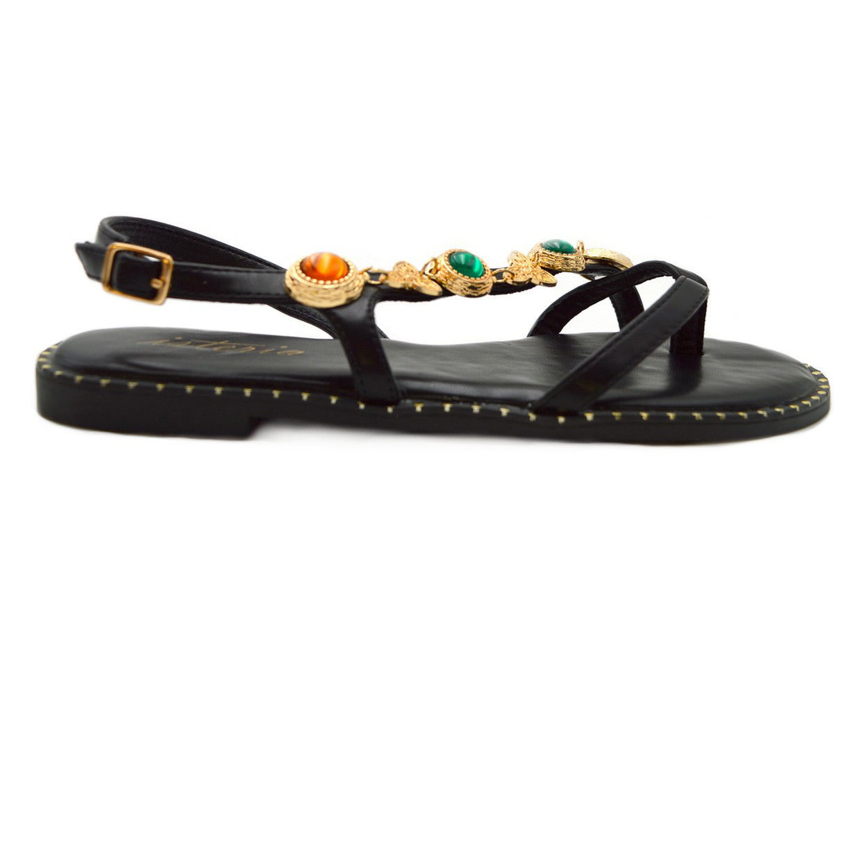 Το απόλυτο πέδιλο της σεζόν που μόλις θα το βάλετε θα κλέψετε τις εντυπώσεις .Μπορείτε να το φοράτε αφού έχει αερόσολο πάτημα και να μην κουράζεστε. Επίσης διαθέτει εκθαμβωτικά μεταλλικά στοιχεία με πέτρες που το κάνει άκρως εντυπωσιακό. Ένα πέδιλο που δεν πρέπει να χάσετε.