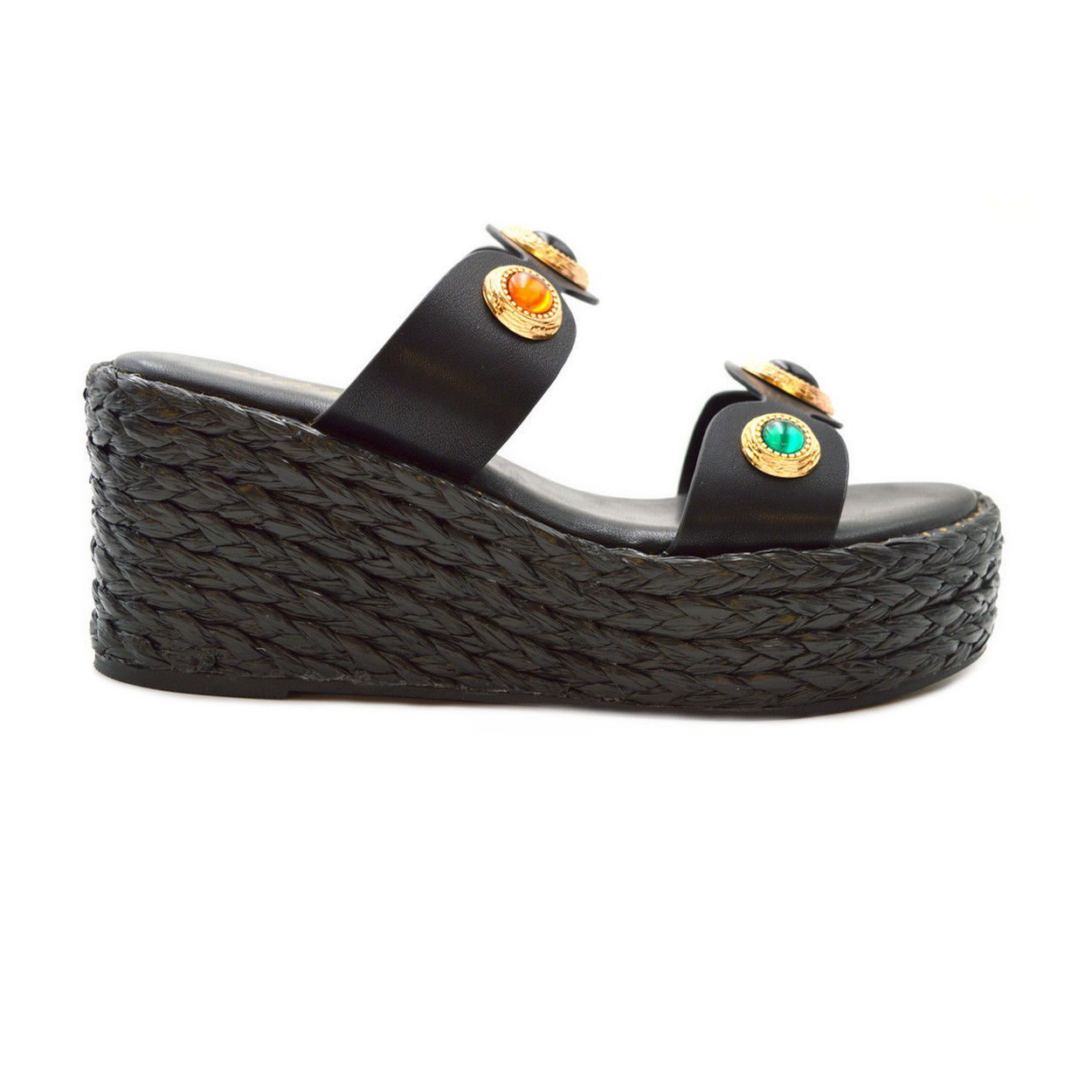 Γυναικεία mules σε μαύρο χρώμα για αμέτρητους συνδυασμούς με όλα τα σύνολά σας. Με φαρδιά φάσα για σταθερό κράτημα και χοντρό τακούνι με φιάπα. Υπέροχο σχέδιο με εκθαμβωτικές πέτρες, για να φορέσετε με όλα σας τα outfit . Υψος τακουνιού: 8 cm Υψος φιάπας: 4 cm