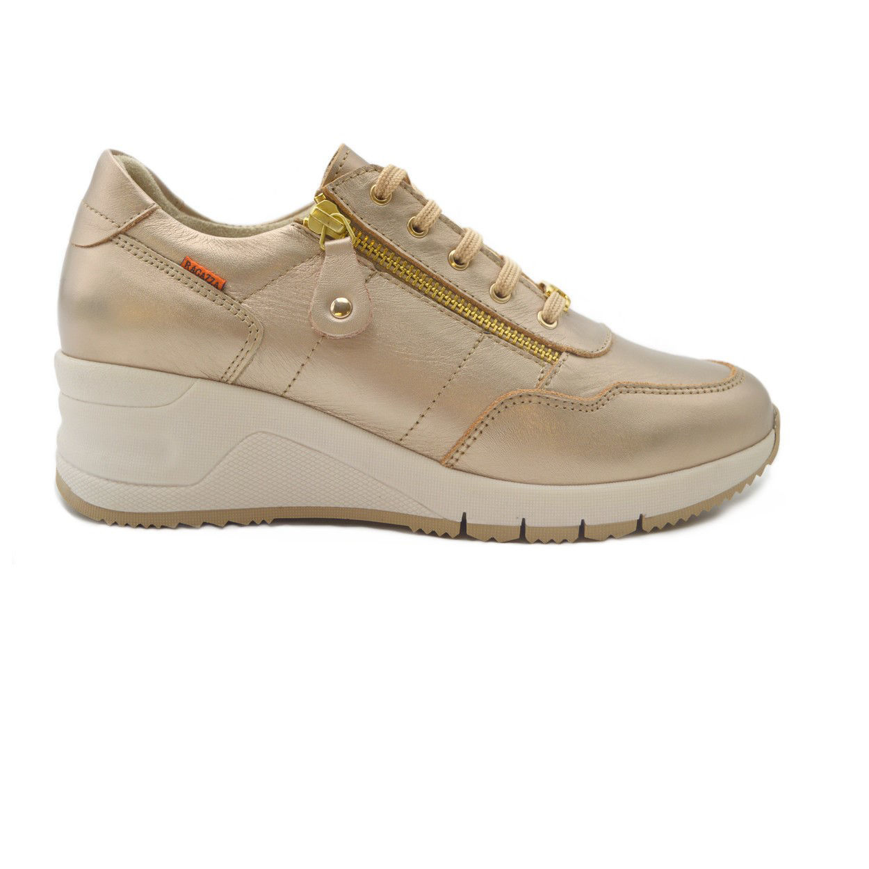 Γυναικείες sneakers του ελληνικού οίκου Ragazza, κατασκευασμένα από εξαιρετικής ποιότητας δέρμα. Διαθέτουν εσωτερική υφασμάτινη επένδυση, πολύ μαλακό πάτο με τεχνολογία Dryflex και αντιολισθητική σόλα. Το ύψος της πλατφόρμας φτάνει τα 5 εκατοστά και η φιάπα είναι στα 2 εκατοστά. Το φερμουάρ στα πλαϊνά όχι μόνο διευκολύνει την γρήγορη εφαρμογή των παπουτσιών αλλά προσφέρει και την μοναδικότητα στο χαρακτήρα τους. Είναι πολύ άνετα και σταθερά, κατάλληλα για όλη την διάρκεια της ημέρας.