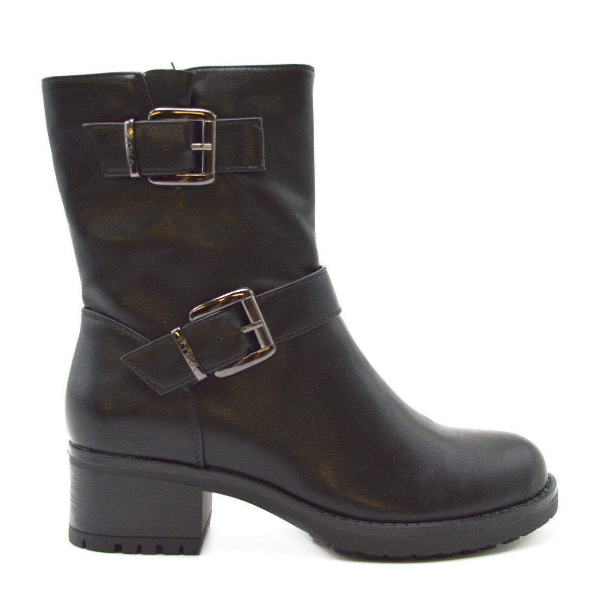 Γυναικεία Μποτάκια αερόσολα σε μαύρο χρώμα. Διαθέτει φερμουάρ στην εσωτερική πλευρά για πιο εύκολη εφαρμογή αλλά και δύο υπέροχες αγκράφες. Μπορείτε να το συνδυάσετε εύκολα με όλα σας τα ρούχα ,είτε για τις πρωινές είτε για τις απογευματινές σας εξορμήσεις. Υλικό: Οικολογικό δέρμα Ύψος τακουνιού: 3cm