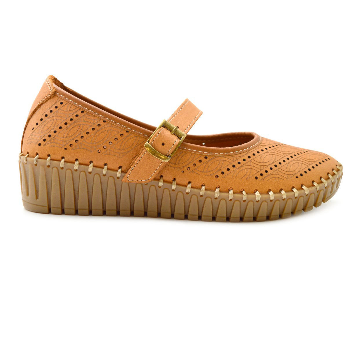Γυναικεία διάτρητη μπαλαρίνα με μπαρέτα, δερμάτινη, ραφτή με αντιολισθητική και αντικραδασμική σόλα. Διαθέτει ειδικό ανατομικό, δερμάτινο και μαλακό πάτο. Για άνετο και ξεκούραστο περπάτημα όλες τις ώρες!