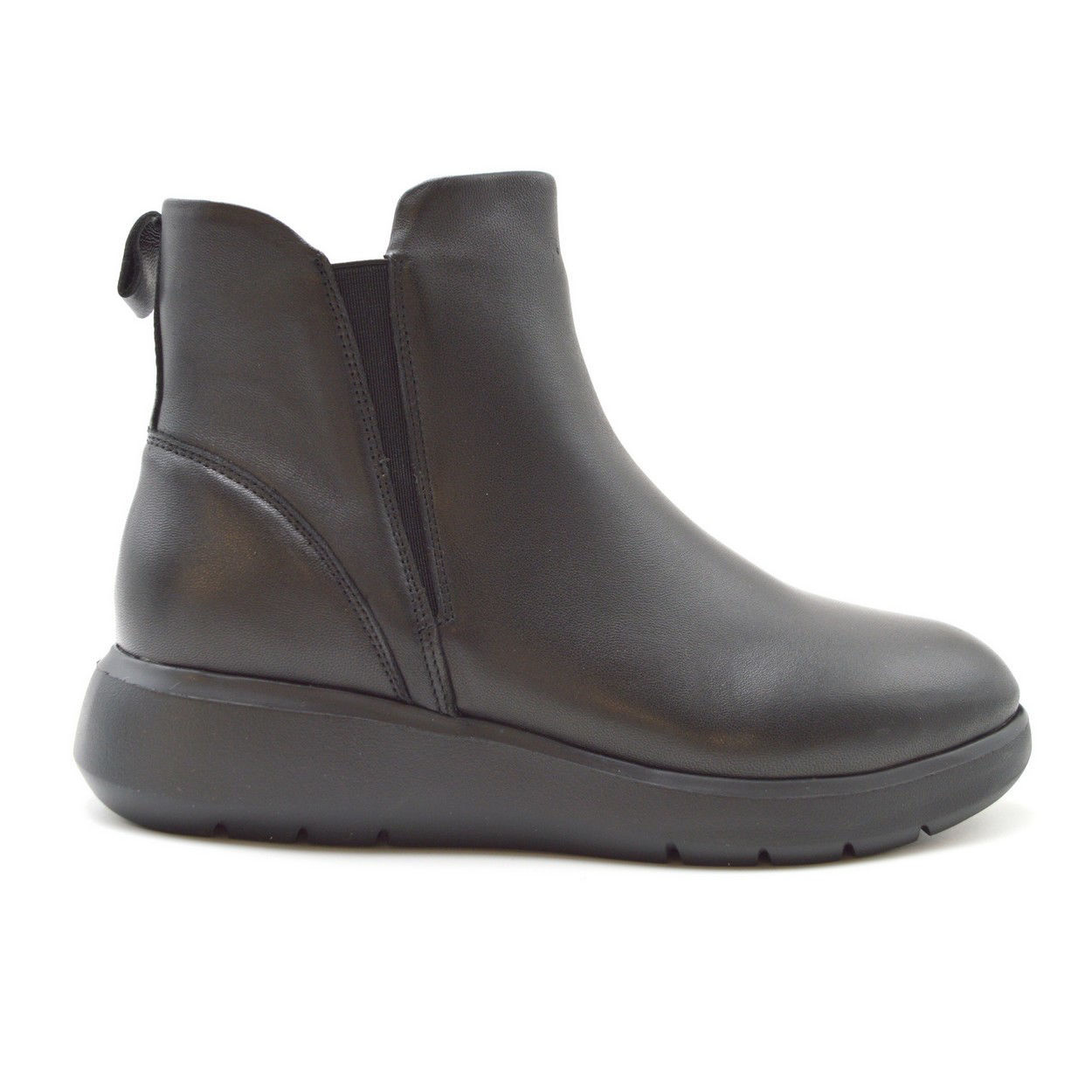Γυναικεία μποτάκια της εταιρείας IMPRONTE σε μαύρο χρώμα. Είναι κατασκευασμένα από εξαιρετικής ποιότητας δέρμα. Διαθέτουν φερμουάρ στο εσωτερικό και λάστιχο για εύκολη και άνετη εφαρμογή, με εξωτερική σόλα από καουτσούκ και με το μοναδικό μαξιλαράκι στη σόλα, για ελαφριά και μαλακά βήματα! H υπερυψωμένη σόλα βοηθά στο βάδισμα και παρέχει απορρόφηση των κραδασμών. Έχει σχεδιαστεί για να μειώνει το σκελετικό μικροτραυματισμό και την κόπωση, διευκολύνοντας την κίνησή σας.