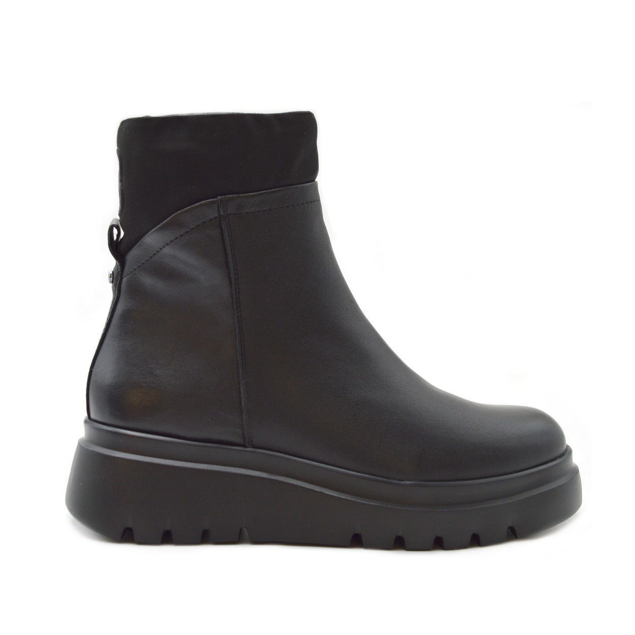 Γυναικεία μποτάκια της εταιρείας IMPRONTE σε μαύρο χρώμα. Είναι κατασκευασμένα από εξαιρετικής ποιότητας δέρμα. Διαθέτουν φερμουάρ στο εσωτερικό και λάστιχο για εύκολη και άνετη εφαρμογή, με εξωτερική σόλα από καουτσούκ και με το μοναδικό μαξιλαράκι στη σόλα, για ελαφριά και μαλακά βήματα! H υπερυψωμένη σόλα βοηθά στο βάδισμα και παρέχει απορρόφηση των κραδασμών. Έχει σχεδιαστεί για να μειώνει το σκελετικό μικροτραυματισμό και την κόπωση, διευκολύνοντας την κίνησή σας.