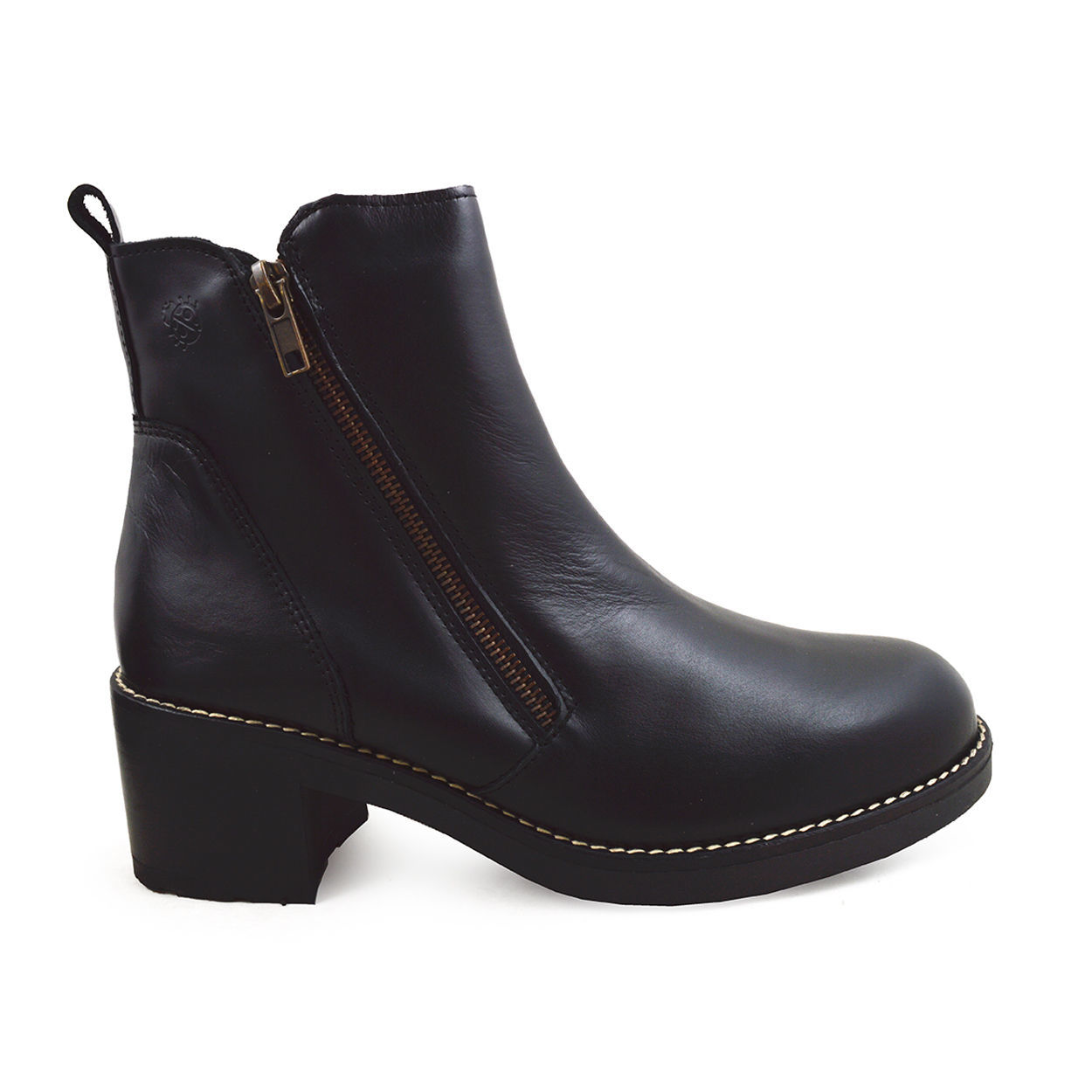 Δερμάτινο μποτάκι, σε μαύρο χρώμα, υπόσχεται άνεση στην καθημερινότητα σας. Ο σχεδιασμός, θα σας κάνει να δημιουργήσετε εντυπωσιακές εμφανίσεις. Φερμουάρ στην εξωτερική πλευρά για εύκολη εφαρμογή. Κανονική φόρμα, τακούνι 4,5 εκατοστά. και αντιολισθητική σόλα, που εγγυάται το πλήρης κράτημα του ποδιού. Προϊόν κατασκευασμένο με τη χρήση φυτικών βαφών και βιώσιμες συσκευασίες για σεβασμό στο περιβάλλον.