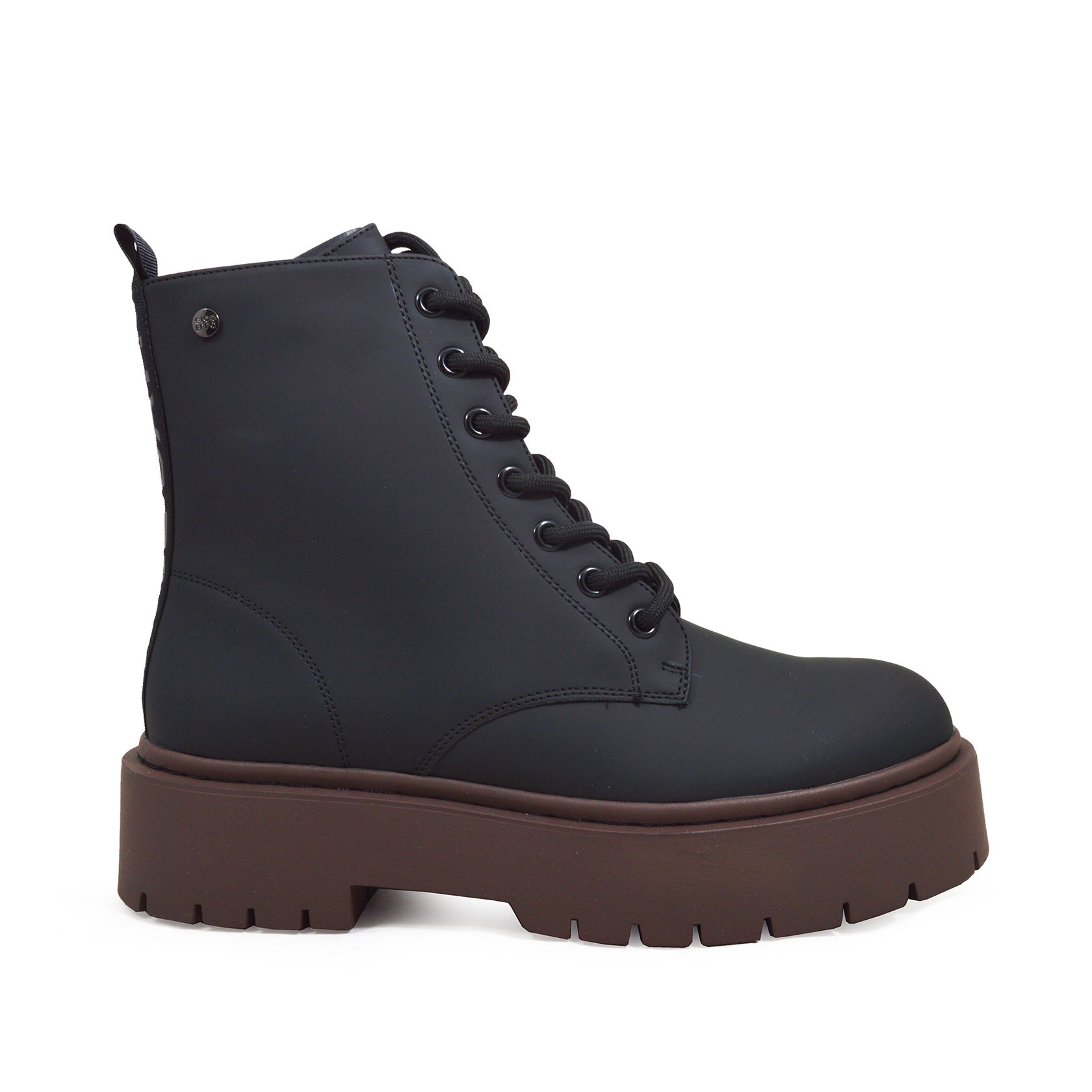 Επάνω μέρος: μποτάκια Gioseppo με κορδόνια από μαύρο δέρμα καουτσούκ, με λουράκι στο πίσω μέρος με τη φράση 'Have a Nice Day' και μαύρα κορδόνια. Το πιο μοντέρνο!