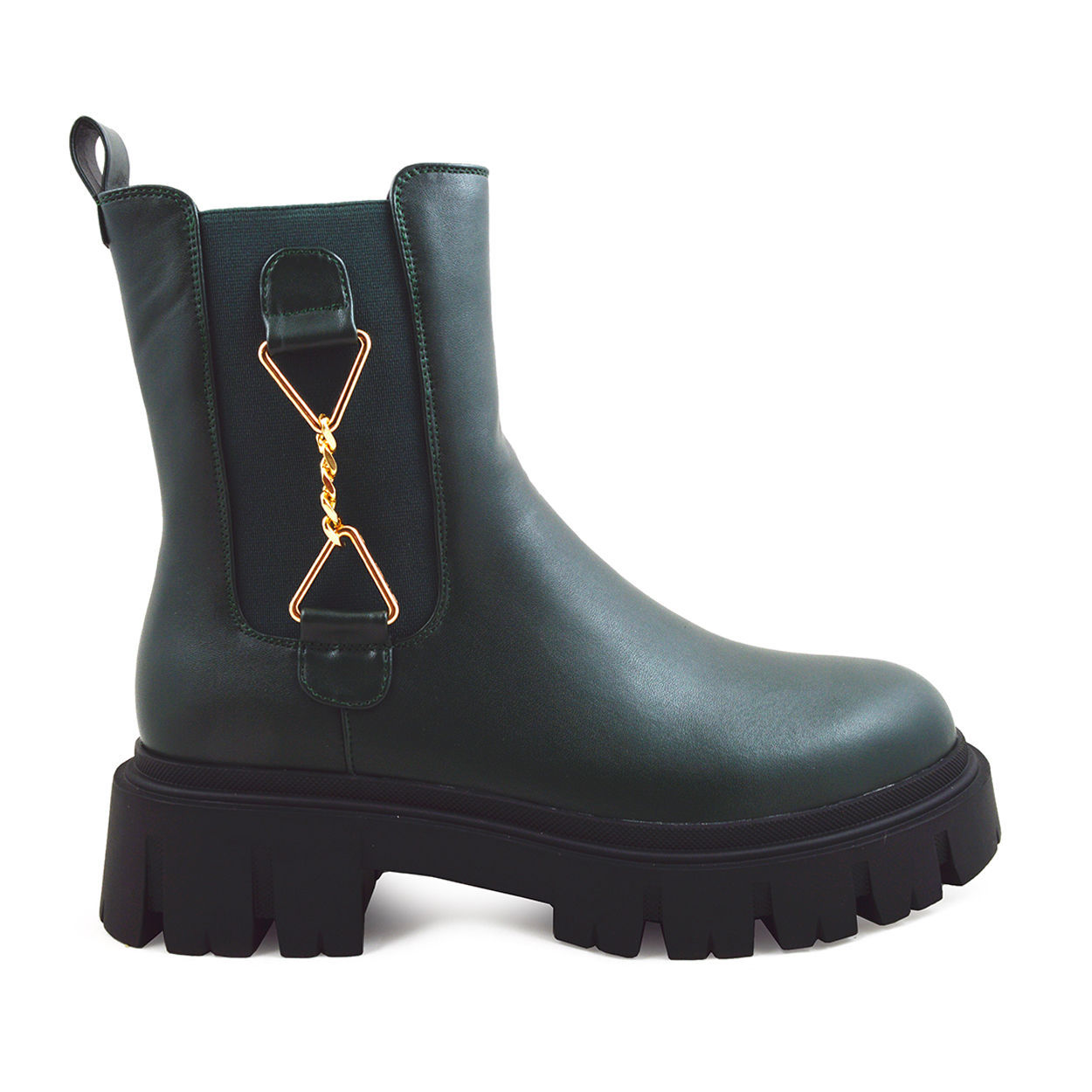 Γυναικεία πράσινα μποτάκια της εταιρίας Gianna Kazakou από δέρμα συνθετικό με υφασμάτινη φόδρα, συνθετική σόλα και τακούνι 6 cm. Διαθέτει πέλμα μαξιλάρι που το κάνει πιο άνετο και πιο αναπαυτικό.