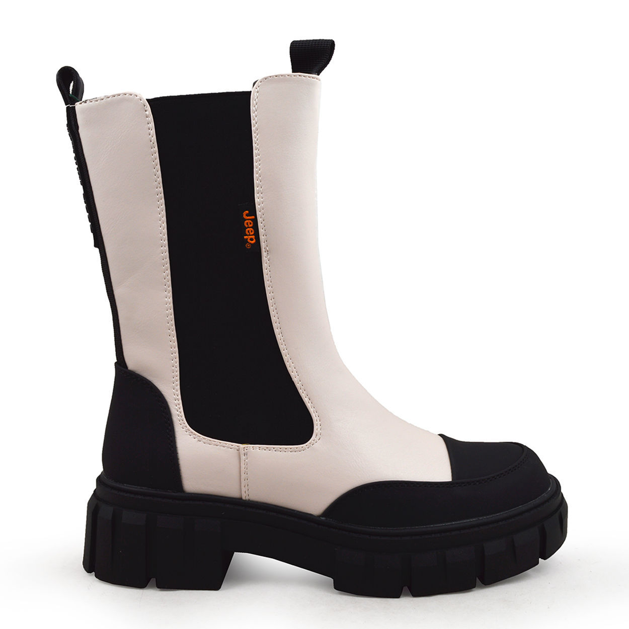 Γυναικείες Μπότες 3/4 της Jeep σε σπασμένο λευκό χρώμα. Είναι κατασκευασμένες από οικολογικό δέρμα με λάστιχο στα πλαϊνά για εύκολη εφαρμογή. Μία μοντέρνα επιλογή, που θα σας συνοδέψει στις καθημερινές σας εμφανίσεις. Διαθέτουν μαλακό πάτο και αντιολισθητική σόλα, για σταθερά και άνετα βήματα. ΥΛΙΚΟ Συνθετικό Δέρμα ΦΟΔΡΑ Υφασμάτινη ΥΨΟΣ ΤΑΚΟΥΝΙΟΥ 4 cm