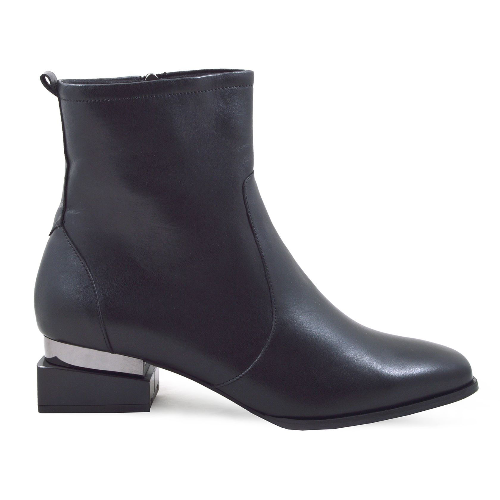 Γυναικεία μποτάκια από δέρμα με υφασμάτινη φόδρα, συνθετική σόλα και τακούνι 4½ cm.