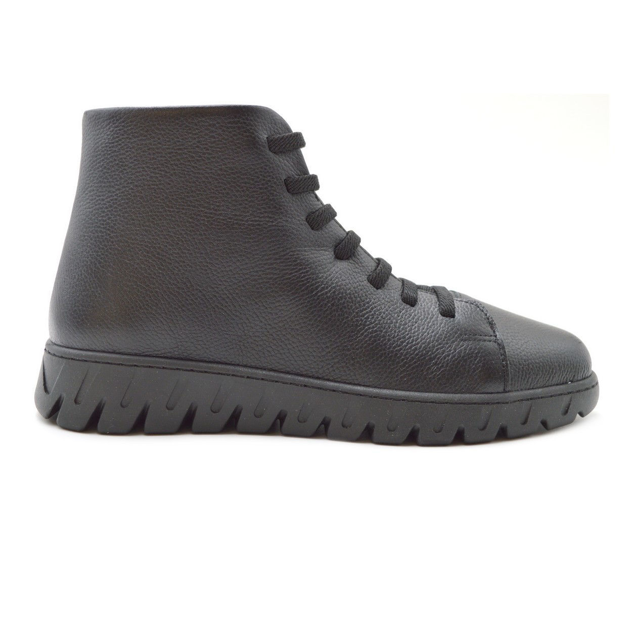 Γυναικεία ανατομικά μποτάκια safe step από πολύ μαλακό δέρμα και αποσπώμενο εσωτερικό πατάκι. Ιδανικά για ευαίσθητα πόδια αφού χαρίζουν πολύ μαλακό πάτημα. Διαθέτουν κορδόνια αλλά και φερμουάρ για εύκολη εφαρμογή. Σε μαύρο χρώμα. Με σόλα 2 εκατοστά .