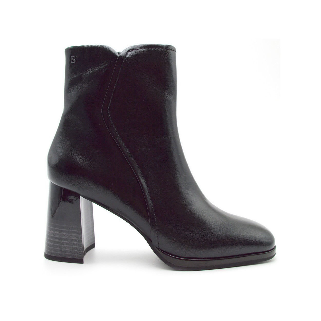Γυναικεία μποτάκια της εταιρείας STONEFLY σε μαύρο χρώμα.Είναι κατασκευασμένα από εξαιρετικής ποιότητας μαλακό δέρμα. Διαθέτει φερμουάρ στο εσωτερικό για ευκολότερη εφαρμογή. Με εσωτερικό πάτο με πέλμα μαξιλάρι το κάνει να είναι πάρα πολύ μαλακό και άνετο για τις καθημερινές σας βόλτες. Κάνει τετράγωνο καρέ μπροστά ,προσδίδοντας του κομψότητα και στύλ και άνεση χάρις το χοντρό τακούνι, Ύψος τακουνιού 8 cm και φιάπα 1 cm