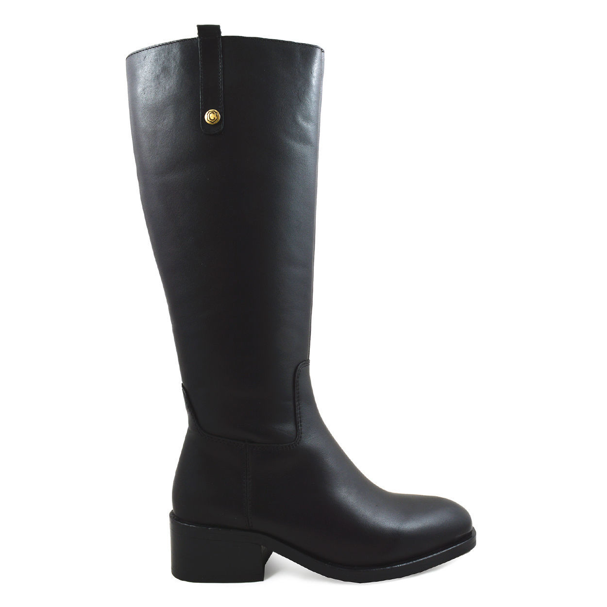 Γυναικείες μπότες, μάρκας Carmela. Κατασκευασμένο από υψηλής ποιότητας δέρμα. Κλείσιμο με φερμουάρ στο πλάι. Ψηλή γάμπα 37 cm. Τακούνι 4 cm και αντιολισθητική σόλα.