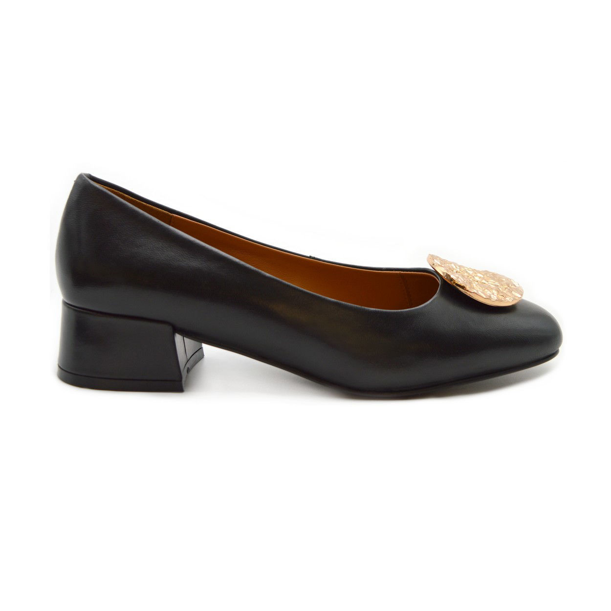 Γυναικείες γόβες της εταιρείας GIOSEPPO . Είναι κατασκευασμένα από δέρμα και τακούνι 4 cm. Έχουν μία πολύ όμορφη χρυσή στρογγυλή αγκράφα που την κάνει και για πιο καλές εμφανίσεις.
