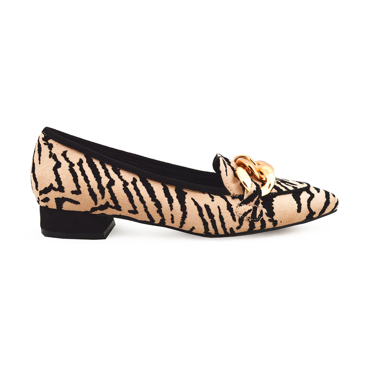 Γυναικείες μπαλαρίνες Azarey από καστόρι συνθετικό με συνθετική φόδρα και συνθετική σόλα. Σε ένα υπέροχο animal print ( μπέζ-μαύρο) και με χρυσή αλυσίδα θα κάνουν τις εμφανίσεις σας είτε πρωινές είτε βραδινές απλά εκθαμβωτικές.