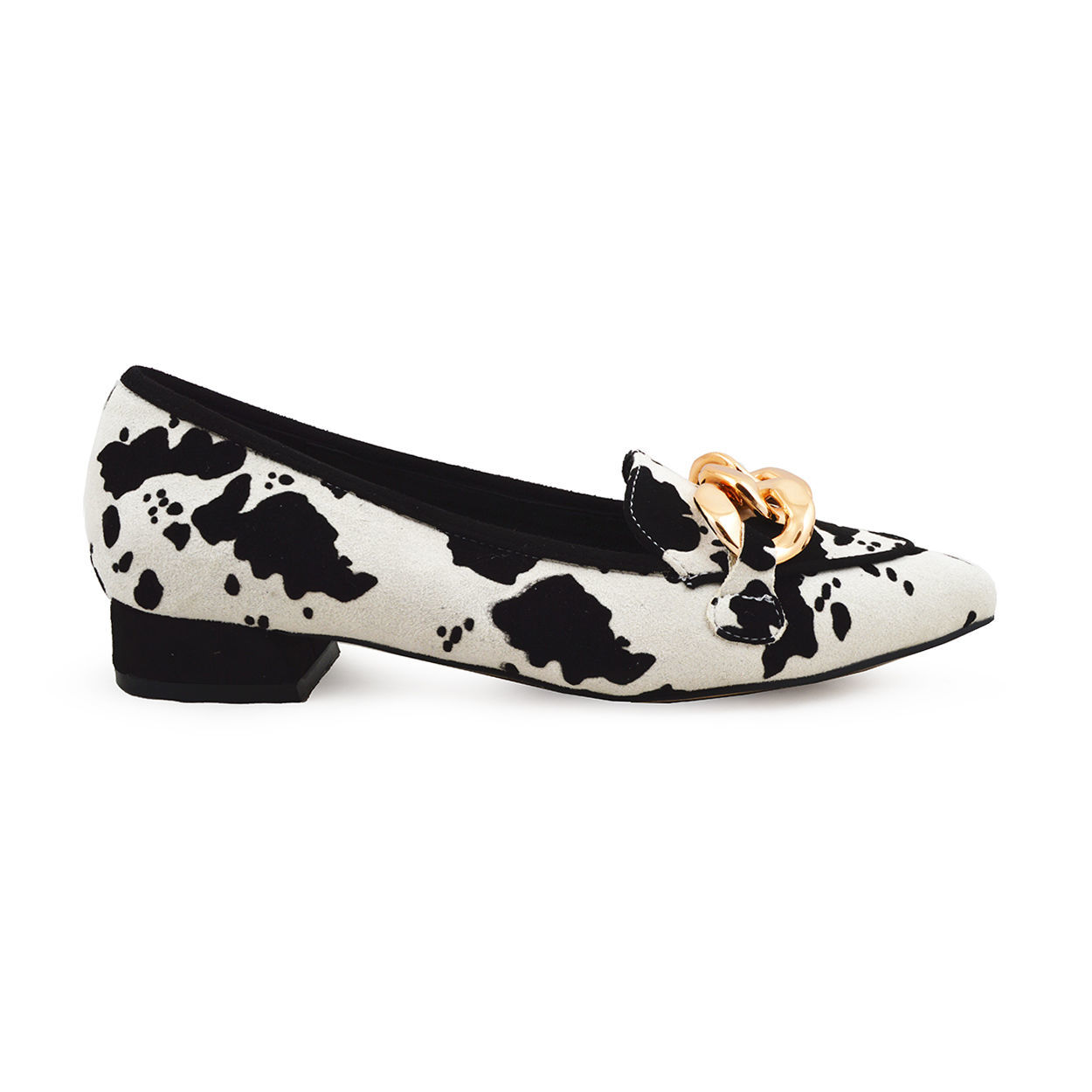 Γυναικείες μπαλαρίνες Azarey από καστόρι συνθετικό με συνθετική φόδρα και συνθετική σόλα. Σε ένα υπέροχο print σε σχήμα αγελάδας και με χρυσή αλυσίδα θα κάνουν τις εμφανίσεις σας είτε πρωινές είτε βραδινές απλά εκθαμβωτικές.