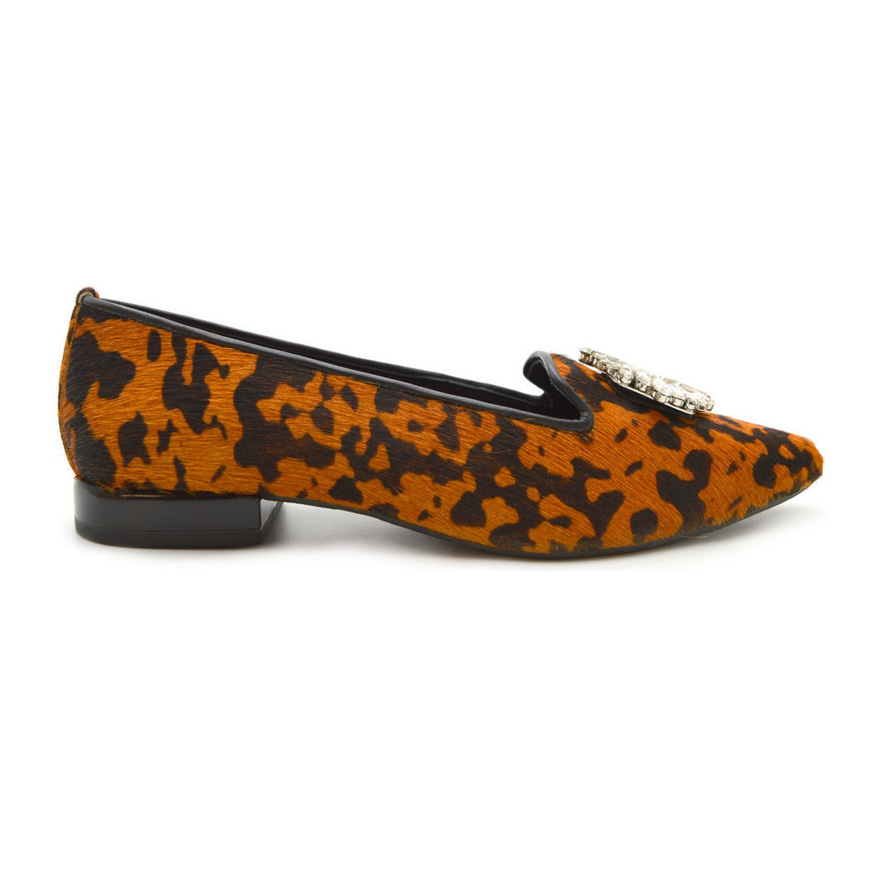 Γυναικείες Μπαλαρίνες της εταιρείας GIOSEPPO. Είναι κατασκευασμένo από δέρμα το λεγόμενο poni skin. Φέρει ένα υπέροχο animal print σε leopar απόχρωση καθώς και μία εντυπωσιακή αγκράφα σε ασημί χρώμα. Ύψος τακουνιού : 3 cm